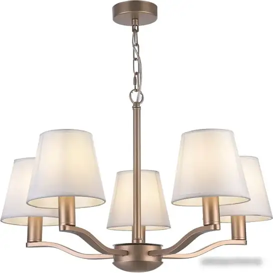 Подвесная люстра Freya Marika FR5671PL-05G выполнена в современном стиле, сочетая золотой каркас и белые текстильные абажуры. Она подходит для гостиной, кухни, спальни, кафе и офисов, создавая уютную атмосферу. Люстра оборудована пятью цоколями E14 и рассчитана на лампы мощностью до 60 Вт каждая. Ее длина и ширина составляют 61 см, а высота — от 46 до 66 см, что позволяет разместить ее в разных помещениях. Вес устройства — 2,25 кг, монтаж осуществляется на планку, без необходимости управлять через пульт или регулировки яркости.