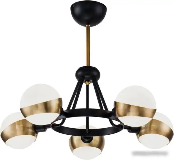 Подвесная люстра Freya Modern Silvia FR5009PL-05B создаёт уютную атмосферу в комнате благодаря пяти лампам мощностью по 60 Вт. Ее современный дизайн с черными плафонами из стекла и белым каркасом из металла привлекает взгляд и легко сочетается с разными интерьерами. Люстра крепится к потолку на крюке и имеет длину около 5,8 см, шириной 58 см и высотой 39 см. Управлять светом можно вручную, так как пульт дистанционного управления отсутствует. Устройство не регулирует высоту, и лампочки в комплект не входят. Эта люстра хорошо подходит для гостиной или спальни, создавая мягкий, рассеянный свет без дополнительных функций. Она не защищена от влаги, потому что предназначена для сухих помещений. Удобная и надежная, эта модель добавит современный штрих в ваш интерьер.