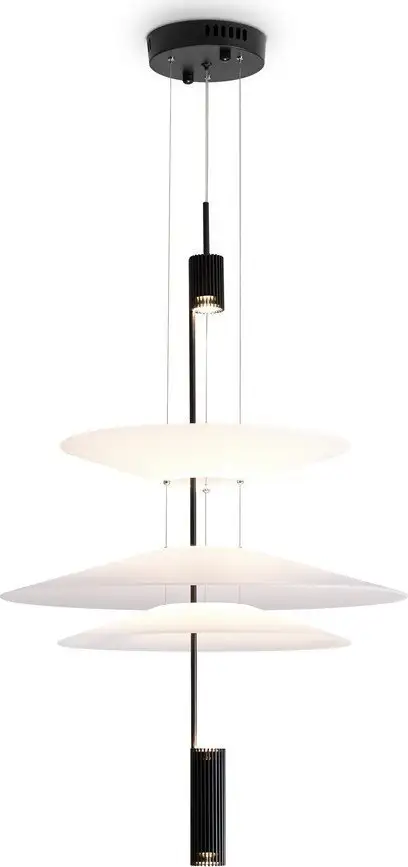 Подвесная люстра Freya Mono FR6190PL-L7WB сочетает в себе современные материалы и простую геометрию, создавая эффект парения в воздухе. Ее дизайн основан на контрастных оттенках: черном металле, белых плафонах и легком алюминии, что придает ей уникальную эстетику. Светильник оснащен мощным LED-источником мощностью 7 Вт и световым потоком 3000 люмен, что обеспечивает яркое и теплое освещение. Акриловые рассеиватели превращают яркий свет в мягкое и равномерное сияние, создавая уютную атмосферу. Длинный провод длиной 3500 мм дает возможность легко регулировать высоту и размещение люстры. Она отлично впишется как в современные минималистичные интерьеры, так и в традиционные пространства, добавляя им современного акцента. Простая форма и гладкие линии делают эту люстру акцентом в любом помещении, а её технические характеристики обеспечивают надежность и комфорт использования.