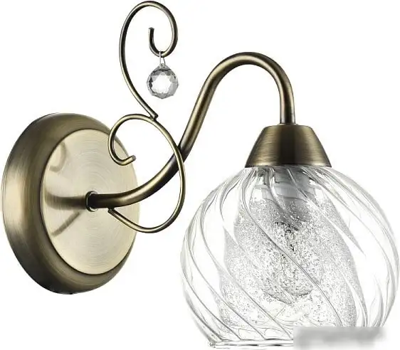 бра, 1×40 Вт, плафон прозрачный, каркас бронзовый