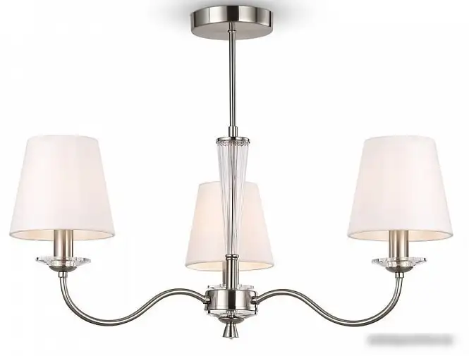 люстра средней высоты, плафон белый (текстиль), каркас никель