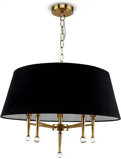 подвесная люстра, плафон черный (текстиль), каркас латунь