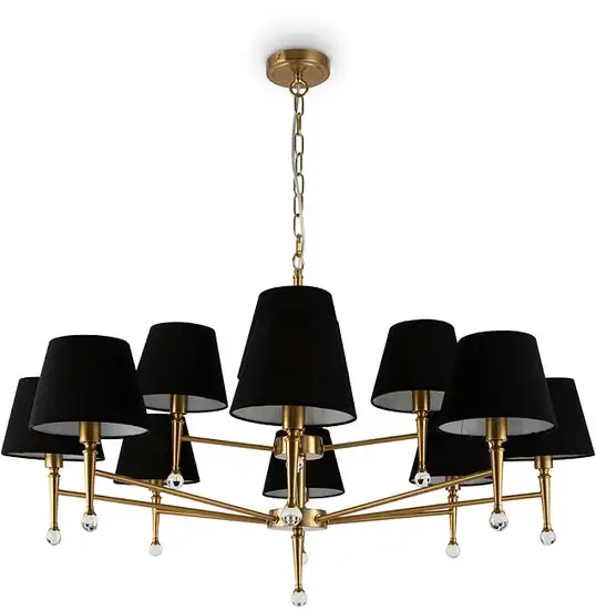 подвесная люстра, плафон черный (текстиль), каркас латунь