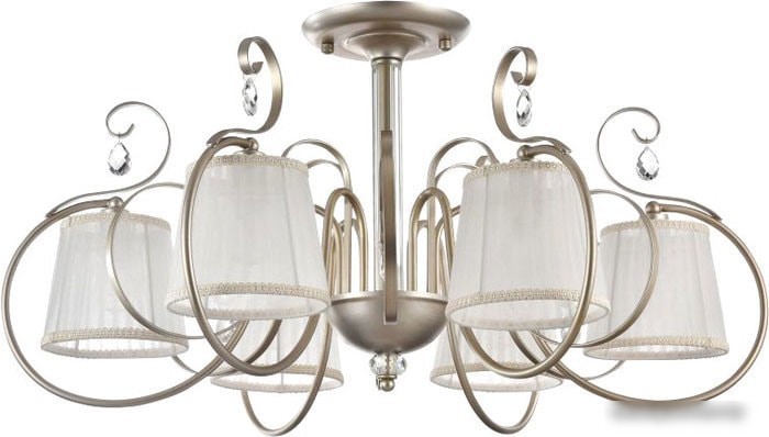Люстра Freya Simone FR2020-CL-06-BG — потолочное освещение с шестью лампами мощностью по 40 Вт, идеально подходящее для просторных комнат. Ее белые плафоны из текстиля создают мягкий и приятный свет, а прочный металлический каркас в цвете латунь сохраняет стильный внешний вид. Люстра имеет фиксированную длину 80 см, ширину 80 см и высоту 36.9 см, обеспечивая равномерное освещение. Она крепится на планке и не регулируется по высоте или яркости, что упрощает монтаж и эксплуатацию. Благодаря классическому дизайну она легко сочетается с различными интерьерами. Особенностью является отсутствие встроенных датчиков и регулировки яркости, что подходит для постоянного освещения. Вес изделия составляет 5.4 кг, оно надежно и устойчиво в установке.