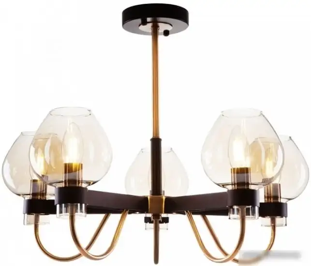 люстра средней высоты, плафон прозрачный (стекло), каркас бронзовый
