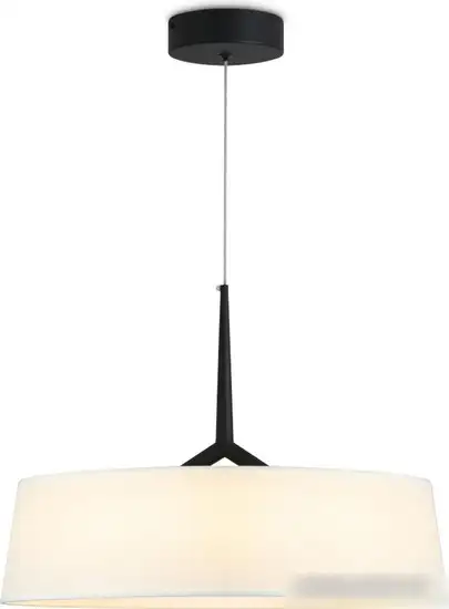 люстра средней высоты, плафон бежевый (текстиль), каркас черный