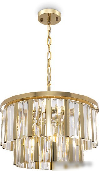 подвесная люстра, плафон прозрачный (хрусталь), каркас золотистый