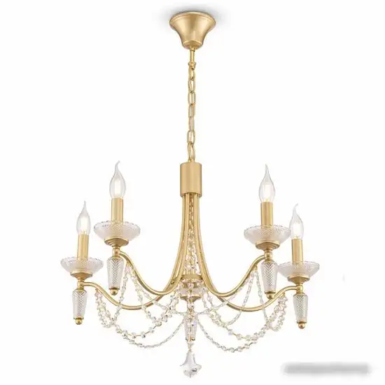 Подвесная люстра Freya Zoe FR2009PL-05G имеет классический дизайн с золотистым каркасом и прозрачными элементами. Она оснащена пятью лампами мощности по 40 Вт, которые обеспечивают яркое освещение. Люстра крепится к потолку на крюке и отличается регулировкой высоты до 162 см, что помогает подобрать оптимальный уровень освещения. Каркас выполнен из металла, а плафоны — из стекла, что придает изделию прочность и элегантность. Устройство не содержит выключателя и пульта дистанционного управления, включается простым подключением к сети. Использует лампы разных типов: накаливания, люминесцентные или светодиодные, что дает возможность выбора по энергииэффективности и яркости. Благодаря материалам и дизайну, люстра легко впишется в классический интерьер пространства. Устройство не регулирует яркость и не оснащено поворотными или светодиодными лампами, что упрощает уход и обслуживание.