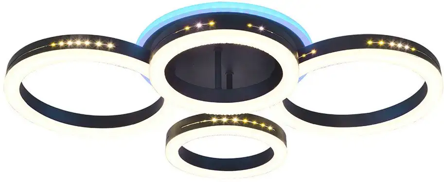 Припотолочная люстра General Lighting GSMCL-Smart64 — это современное освещение для вашего дома. Она располагается на потолке и оснащена четырьмя светодиодными лампами общей мощностью 105 Вт. Цвет плафонов и каркаса — белый и черный, что создает стильный и аккуратный вид. Люстра управляется дистанционно с помощью пульта, который идет в комплекте, и позволяет регулировать яркость и цветовую температуру от 3000 до 6000 К. Благодаря встроенным светодиодам она обеспечивает яркий световой поток в 6400 люмен. Свет можно адаптировать под настроение или задачи, выбирая белый, желтый или мультицветной режимы подсветки. Размеры — 67x67 см, высота — 13 см, вес — 1,4 кг, что упрощает монтаж. Каркас сделан из пластика, он легкий и долговечный. Эта люстра отлично подойдет для современного интерьера и надежного освещения помещения.