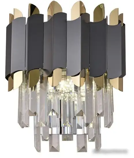 бра, плафон прозрачный (стекло), каркас черный/золотистый