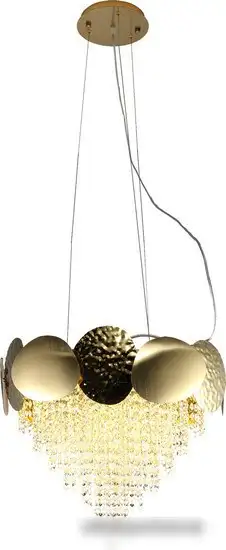 Подвесная люстра Hiper Gloria H165-3 — современное решение для освещения вашего помещения. Она оснащена семью лампами с цоколем GU10, каждая из которых имеет мощность 50 Вт, что обеспечивает яркое освещение. Люстра имеет золотистый металлический каркас и прозрачные стеклянные плафоны, создавая стильный внешний вид. Она крепится к потолку и хорошо подходит для просторных комнат. Ширина изделия составляет 40 см, а высота — 150 см, что позволяет легко адаптировать её под ваш интерьер. Люстра легко монтируется и долго служит благодаря качественным материалам. Современный дизайн дополнит любой современный интерьер, добавляя свет и уют. Ее яркость позволяет использовать её как основное освещение в комнате.