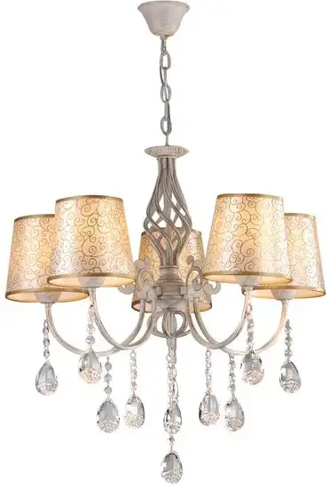 Подвесная люстра Hiper H056-5 создаёт уют в любой комнате благодаря пяти светлым лампам мощностью 60 Вт каждая. Её классический дизайн сочетает белый, золотистый и прозрачный каркас с тканевыми плафонами, что придаёт интерьеру изысканность. Люстра подключается к потолку и крепится резко на крюк. Общая длина и ширина 61 см, а максимальная высота — 59 см, что позволяет легко установить в просторную комнату. Световой поток составляет 4500 люмен, что обеспечивает хорошее освещение. В комплект ламповки не входят, и регулировка яркости или цветовой температуры отсутствует. Металлический и стеклянный материалы служат долговечно и красиво выглядят. Эта люстра идеально подходит для классического интерьера и служит хорошим источником общего света.
