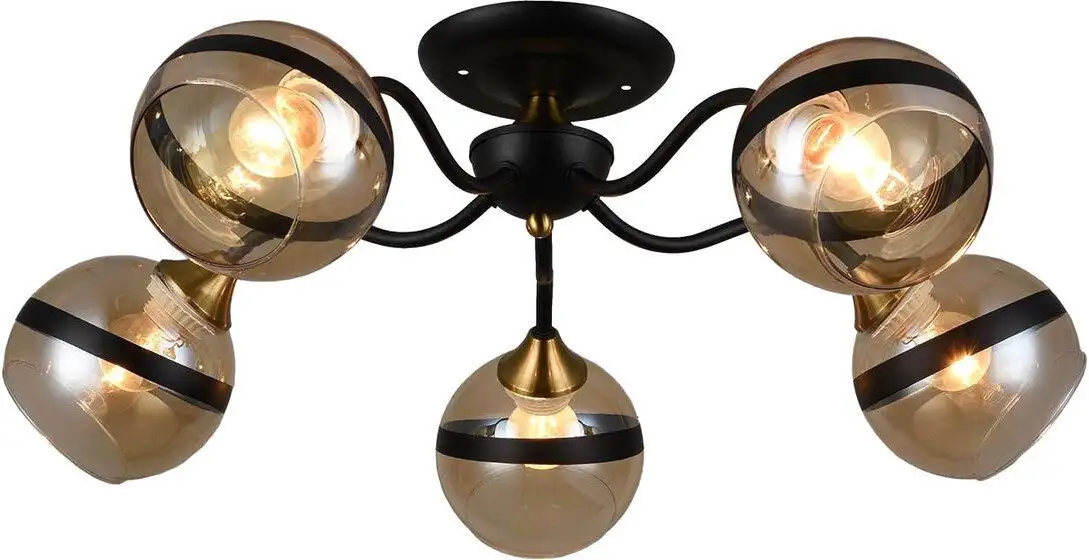 люстра средней высоты, плафон янтарный (стекло), каркас черный