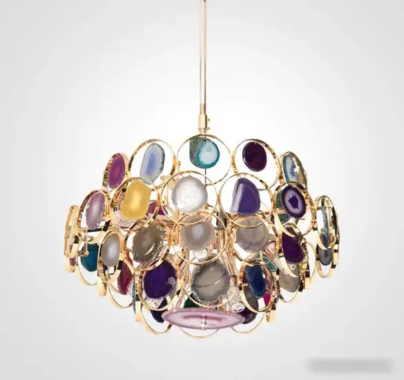 подвесная люстра, плафон серый/белый/розовый/фиолетовый/желтый/синий (натуральный камень), каркас золотистый