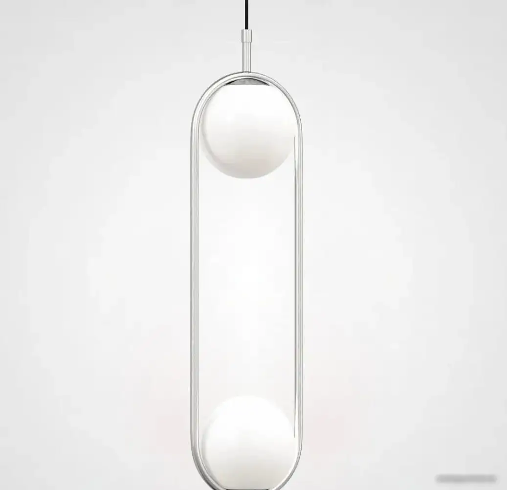 Подвесная люстра ImperiumLoft HOOP-DUO01 создаёт светлый и стильный акцент в вашей комнате. Она оснащена двумя лампами мощностью по 80 Вт, что обеспечивает яркое освещение. Белые стеклянные плафоны и хромированный каркас делают её современным и элегантным элементом интерьера. Люстра легко монтируется к потолку и имеет длину 18,5 см, ширину 18,5 см и высоту 67 см, что подходит для разных помещений. Благодаря качественным материалам - металлу и стеклу - она выглядит красиво и долго прослужит. Простая установка и современный дизайн позволяют быстро обновить ваш интерьер. Люстра использует цоколь G9, что дает возможность выбрать подходящие лампы. Она идеально подходит для гостиной, кухни или спальни. Этот светильник сочетает стиль и функциональность, создавая уют и комфорт в доме.