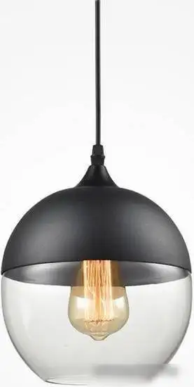 подвесная люстра, плафон прозрачный (стекло), каркас черный