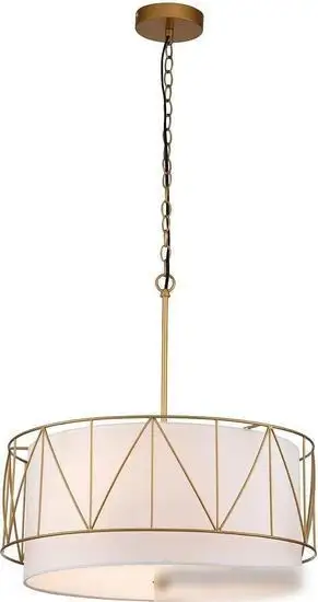 подвесная люстра, плафон белый (текстиль/металл), каркас золотистый