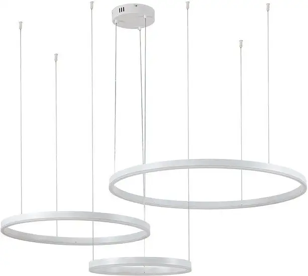 Люстра Indigo Light Galass V000031L — это современный светильник, который идеально подходит для оформления интерьера в стиле модерн. Она состоит из трёх светодиодных колец, закреплённых невидимыми подвесами, что создаёт эффект парения в воздухе. Люстра оснащена встроенными светодиодами мощностью 129 Вт, которая обеспечивает яркое освещение площадью до 35 кв.м. Регулируемая яркость и цветовая температура позволяют настроить освещение по вашему настроению или времени дня. Каркас выполнен из металла и акрила, что делает дизайн лёгким и элегантным. Благодаря дистанционному управлению вы легко изменяете параметры света без необходимости подходить к устройству. Корпус люстры длиной 80 см и шириной 150 см удобно вписывается в просторные комнаты. Вес конструкции составляет всего 2.6 кг, она легко монтируется на потолок при помощи прилагаемого набора. Такой светильник станет эффектным украшением любой комнаты с современным дизайном.