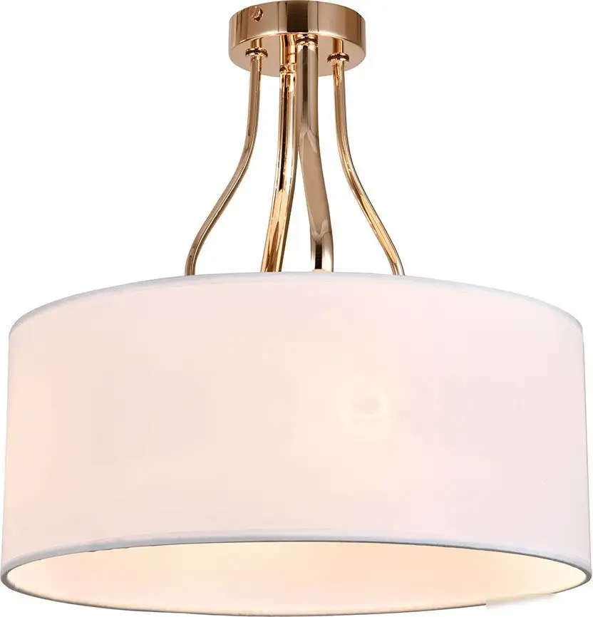 люстра средней высоты, плафон белый (текстиль), каркас золотистый