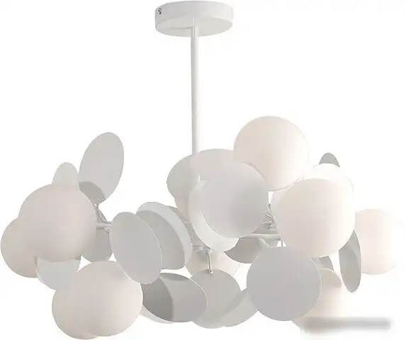 люстра средней высоты, плафон белый (стекло), каркас белый