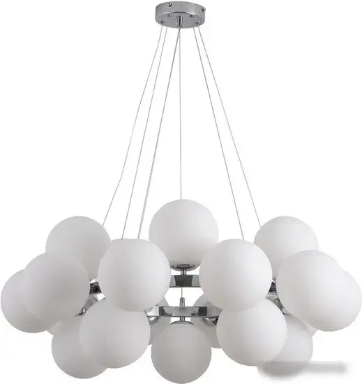 Подвесная люстра Kinklight Сида 07508-20,02 создаст яркое и современное освещение в вашей комнате. Она оснащена 20 лампами мощностью по 10 Вт каждая, что обеспечивает достаточную яркость. Люстра имеет белые плафоны из стекла и хромированный каркас, что придаёт ей стильный внешний вид. Размеры составляют 86 см в длину и ширину, а высота достигает 120 см, что подходит для просторных помещений. Каркас выполнен из металла, а крепление осуществляется с помощью планки. Люстра не имеет встроенных функций регулировки яркости или цвета свечения, потому её удобно установить в комнатах, где требуется стабильное освещение. Вес изделия — 7,3 кг, его легко монтировать с помощью планки. Это устройство не поддерживает подключение к умному дому или дистанционное управление, но отлично справляется с обычным освещением.