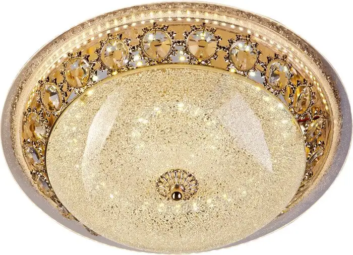 припотолочная люстра, плафон золотистый (стекло/хрусталь), каркас золотистый