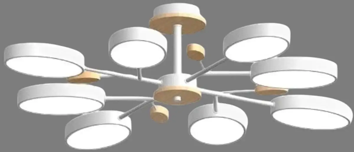 Подвесная люстра LED4U L3221-850 WH создает яркое и равномерное освещение благодаря восьми встроенным светодиодам с мощностью 130 Вт. Она имеет современный дизайн с белыми декоративными плафонами и легким белым каркасом, что подойдет для различных интерьеров. Размеры люстры — 84 см в длину и ширину, а высота — 21 см, что делает ее заметной, но не громоздкой. Люстра крепится к потолку и не требует дистанционного управления или интеграции в умный дом. Она легко вписывается в жилые помещения, предоставляя качественный свет без необходимости регулировки яркости или цвета. Материалы — дерево и металл — обеспечивают прочность и долгий срок службы. Световая температура 4000 К создает комфортную для глаза атмосферу. Люстра легка в установке и весит всего 2.4 кг, что облегчает монтаж и транспортировку.