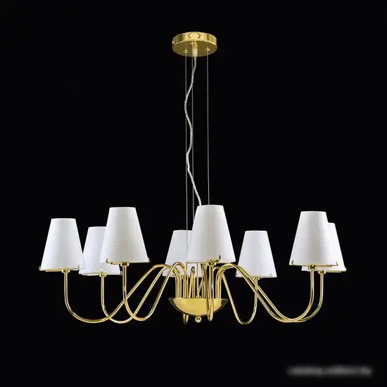 люстра, 8×40 Вт, для кухни, плафон белый, каркас золотистый