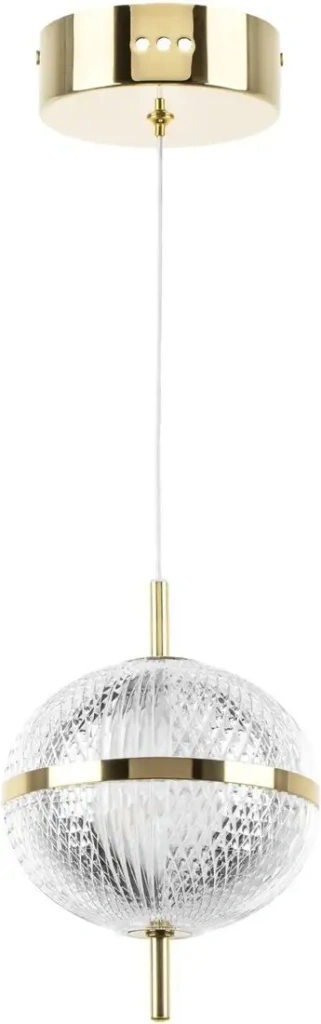 подвесная люстра, плафон прозрачный/золотистый (металл/акрил), каркас золотистый