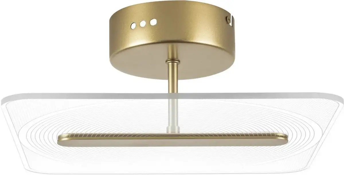 Припотолочная люстра Lightstar Acrile 738043 создаёт мягкое и равномерное освещение в комнате. Она имеет один встроенный светодиодный светильник мощностью 14 Вт, который даёт яркий светопоток 1236 лм при цветовой температуре 3000 K. Люстра оснащена прозрачным акриловым плафоном и золотистым металлокаркасом, что придаёт современный и стильный вид. Размеры изделия — 29 см в длину и ширину, а высота составляет 12 см; её легко установить на потолок с помощью планки. Благодаря встроенной светодиодной подсветке, она обеспечивает комфортное общее освещение. Конструкция не имеет дистанционного управления и возможной регулировки яркости, но зато проста в использовании и долговечна. Люстра весит 1 кг, что облегчает монтаж. Благодаря современному дизайну, она отлично подойдет для различных интерьеров.