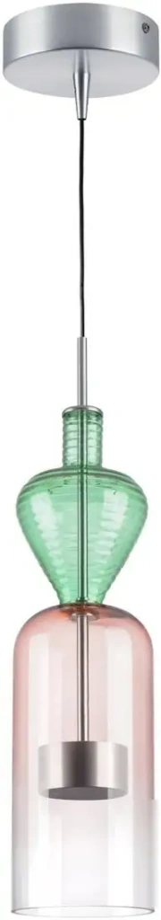 подвесная люстра, плафон зеленый/розовый (стекло), каркас серебристый