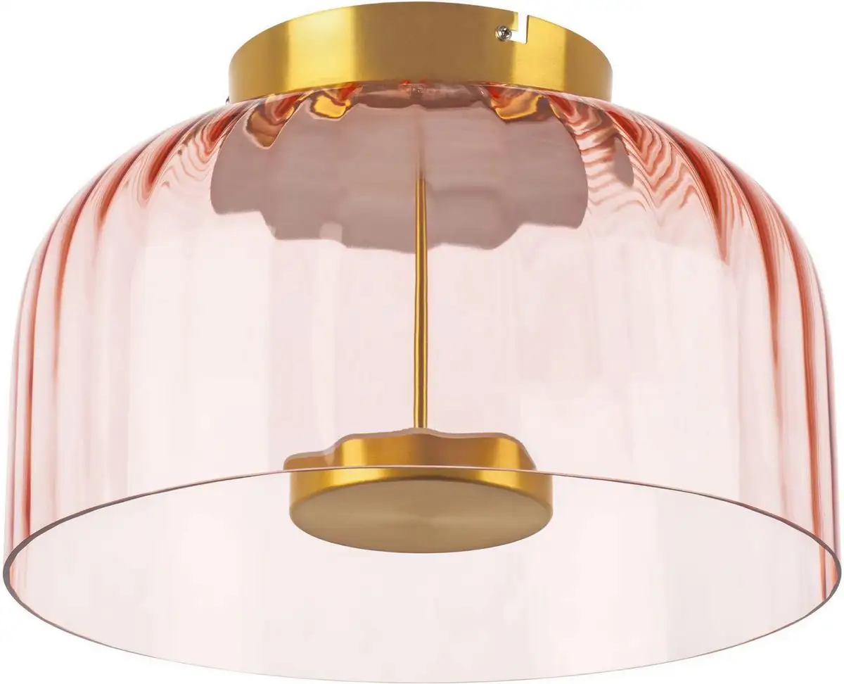 люстра средней высоты, плафон розовый (стекло), каркас золотистый