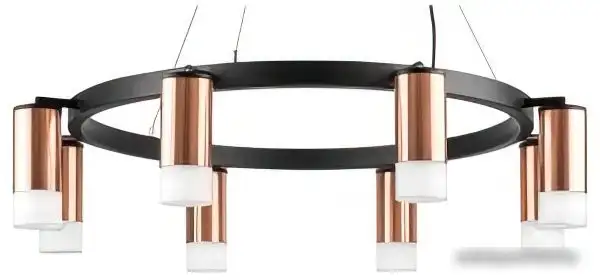 подвесная люстра, плафон белый/медный (акрил/металл), каркас черный