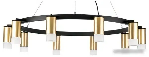 Подвесная люстра Lightstar Rullo LR0204001 отлично подойдет для современного интерьера. Она имеет 10 ламп, каждая из которых мощностью 500 Вт, обеспечивая яркое освещение. Плафоны и абажуры выполнены из белого и золотистого цветов, что добавляет свету тепла и уюта в комнату. Каркас сделан из прочного черного металла, а материалы плафонов — металл и акрил. Устройство крепится к потолку на планке, а ширина люстры достигает 120 см, а высота — 128.5 см, что позволяет освещать просторное помещение. Лампы типа GU10 используют специальные лампочки, которые не входят в комплект. Эта модель отличается современным дизайнерским стилем и легко монтируется. Благодаря ярким и современным материалам, люстра подчеркнет стиль вашего дома.