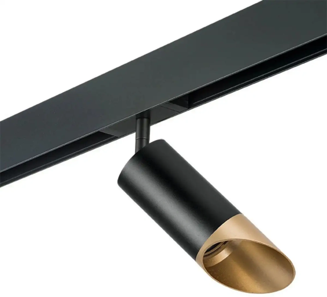 трековый светильник, плафон золотистый/черный (металл), каркас черный