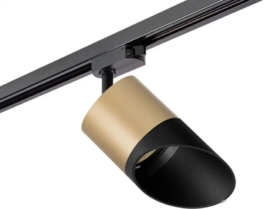 трековый светильник, плафон золотистый/черный (металл), каркас черный