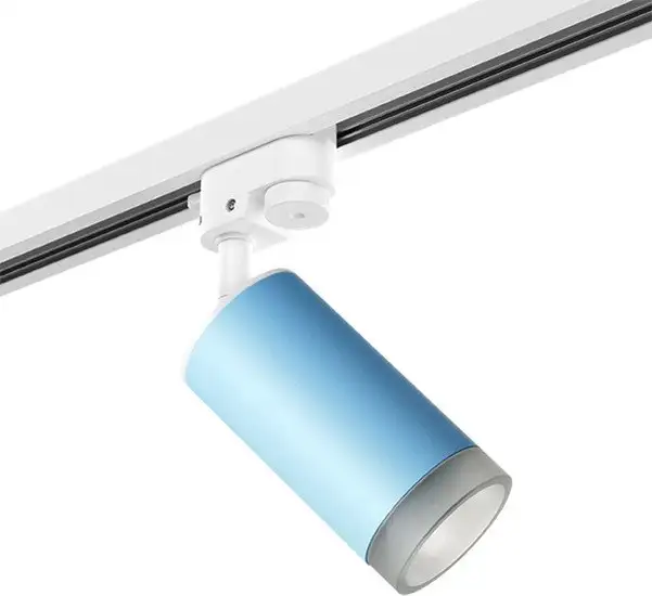 трековый светильник, плафон голубой/матовый (металл/акрил), каркас белый