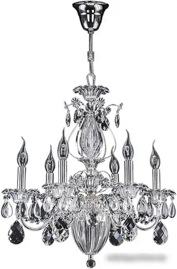 люстра, 6×60 Вт, плафон прозрачный, каркас серебристый