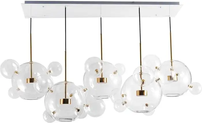 Подвесная люстра LOFT IT Bolle 2027-S5 подходит для современного интерьера и детской комнаты. Она оснащена пятью светодиодными лампами мощностью по 10 Вт, которые создают яркий световой поток 2900 люмен. Люстра имеет ширину 60 см и высоту 95 см, что делает её заметным элементом комнаты. Цвет плафонов — прозрачный, что позволяет равномерно распределять свет. Благодаря современному дизайну и металлическому каркасу она отлично вписывается в различные стили интерьера. Светодиодные лампы обеспечивают энергоэффективность и долгий срок службы. В комплектацию входит ламочка, что удобно для быстрой установки. Люстра не имеет выключателя, поэтому её управляют через выключатель на стене. Подвесная конструкция позволяет легко устанавливать её на потолке без лишних усилий.