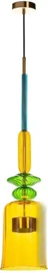 Подвесная люстра LOFT IT Candy 2008-A отлично подойдет для детской комнаты. Она оснащена одной светодиодной лампой мощностью 14 Вт, которая дает яркий свет объемом 380 люмен и создает теплую атмосферу с температурой 3 000 K. Люстра имеет современный дизайн с металлическим каркасом и яркими плафонами голубого, желтого и зеленого цветов, что сделает комнату яркой и веселой. Благодаря компактным размерам — шириной 16 см и высотой 56 см — она хорошо впишется в маленькие и средние помещения. Она крепится к потолку без выключателя и обеспечивает долговечное освещение, так как светодиоды имеют долгий срок службы. В комплект входит лампочка, чтобы сразу начать использовать люстру. Эта модель легко монтируется и подходит для детской, создавая приятное и безопасное освещение.