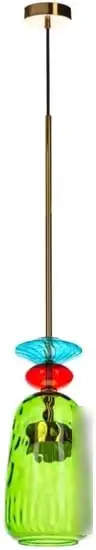 Подвесная люстра LOFT IT Candy 2008-B украшена яркими голубыми, зелёными и красными плафонами, которая создаёт уютную атмосферу в комнате. Её ширина составляет 15 см, а высота — 56 см, что делает её подходящей для различных помещений. Люстра оснащена одной светодиодной лампой мощностью 14 Вт, обеспечивающей яркость в 380 люмен. Световой поток и цветовая температура 3000 К создают тёплый и приятный свет. Каркас изготовлен из металла, а дизайн выполнен в современном стиле. В конструкции отсутствует выключатель, свет включается при подключении к электросети. Благодаря светодиодным лампам, устройство потребляет мало энергии и служит долго. Лампа идёт в комплекте, что позволяет сразу установить люстру.
