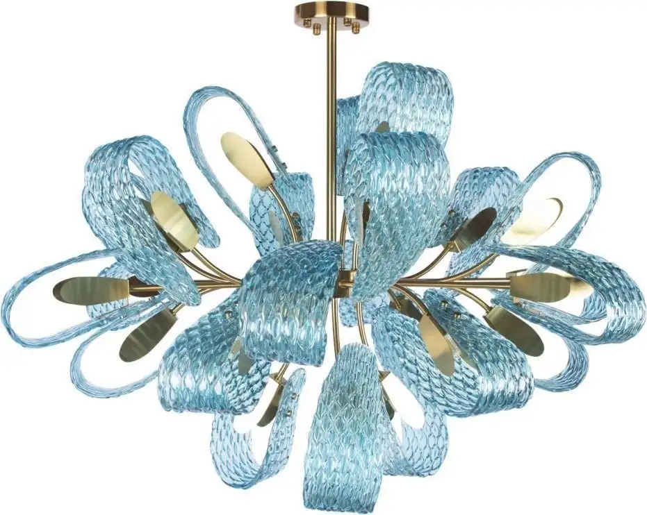 подвесная люстра, каркас голубой/золотистый