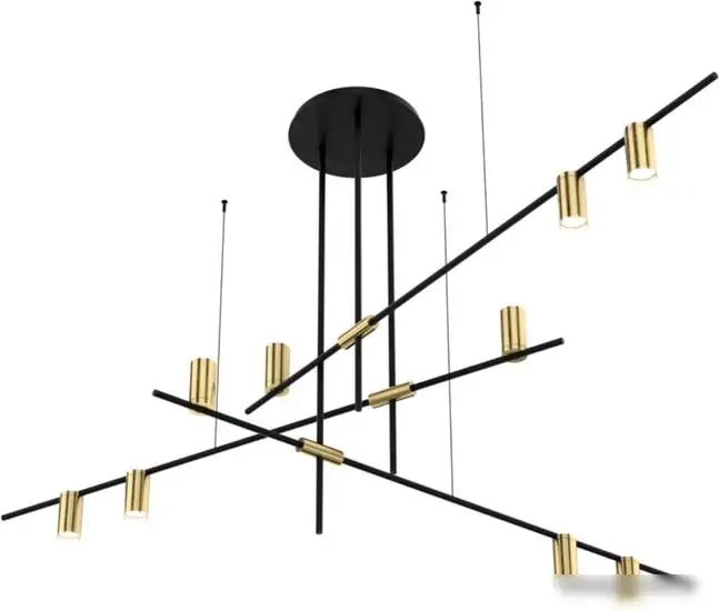 Подвесная люстра LOFT IT Tribes 8120-9 создаёт современный и стильный интерьер благодаря золотистым плафонам и металлическому каркасу. Она оснащена девятью лампами с цоколем GU10, каждая мощностью 40 Вт, что обеспечивает яркое освещение в комнате. Размеры люстры — ширина 138 см и высота 100 см, что подходит для просторных помещений. Люстра не имеет выключателя, поэтому её удобно подключать к общему выключателю на стене. Металлический каркас гарантирует долговечность и прочность конструкции. Благодаря современному дизайну она хорошо впишется в современный интерьер любого стиля. Простая установка и надёжность делают её удобной в использовании. Эта люстра помогает равномерно освещать комнату и создаёт уютную атмосферу.