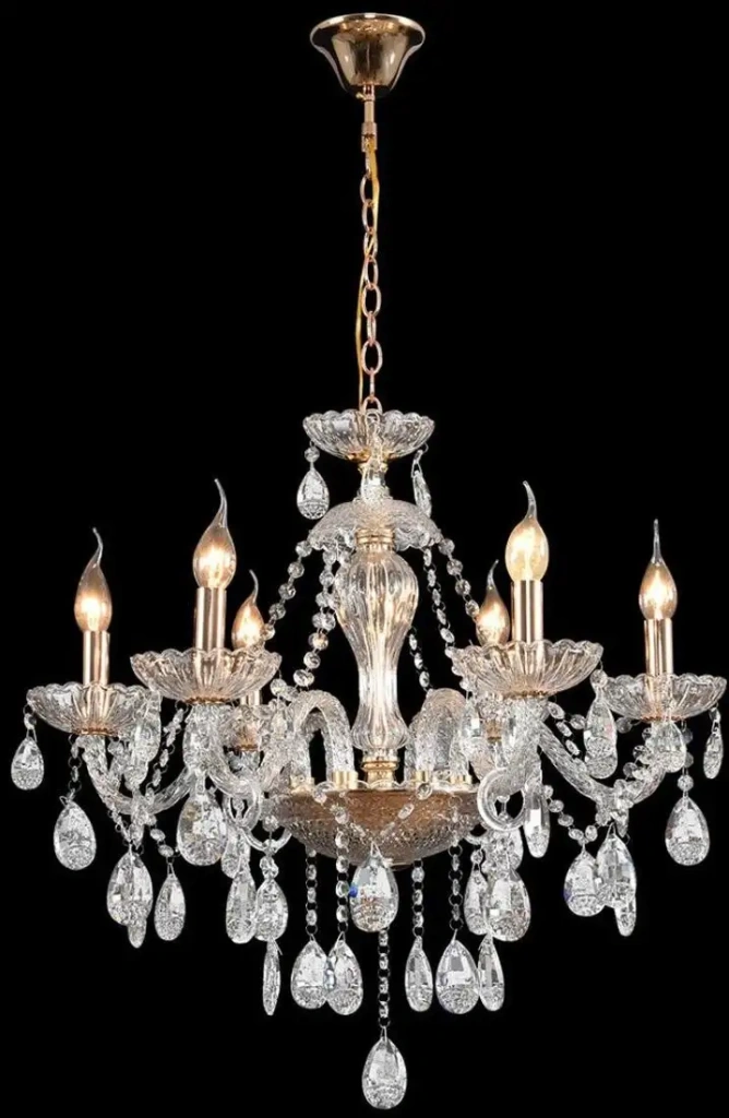 подвесная люстра, плафон прозрачный, каркас золотистый