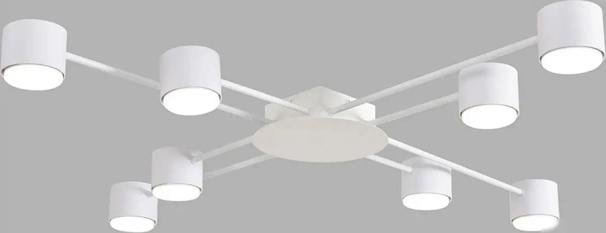Эта потолочная люстра Lumion Benua 8305/8C отлично подойдет для любого помещения. Она оснащена восемью лампами мощностью по 7 Ватт каждая, что обеспечивает хорошее освещение. Размеры люстры — 105 см в длину и ширину, а высота всего 8 см позволяет легко установить ее на потолок. Каркас выполнен из металлического материала, а абажуры — из белого акрила, что создает современный и чистый дизайн. Люстра подключается к сети, не имеет встроенных диодов или возможности регулировки яркости и цвета. В комплект не входит лампочка, и управление осуществляется вручную. Благодаря форме и материалам, люстра выглядит аккуратно и легко сочетается с разными стилями интерьера. Этот светильник хорошо подходит для гостиной, кухни или прихожей. Ее монтаж простой, а вес — около 1.85 кг.