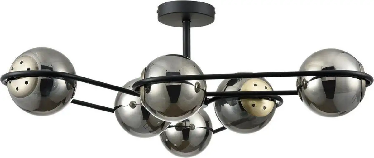 люстра средней высоты, плафон серебристый (стекло), каркас черный