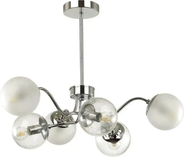 люстра средней высоты, плафон матовый/прозрачный (стекло), каркас хром