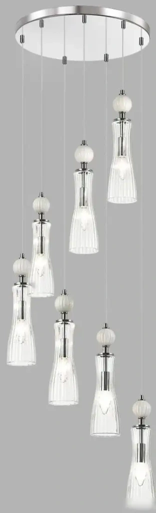подвесная люстра, плафон прозрачный (стекло), каркас серебристый