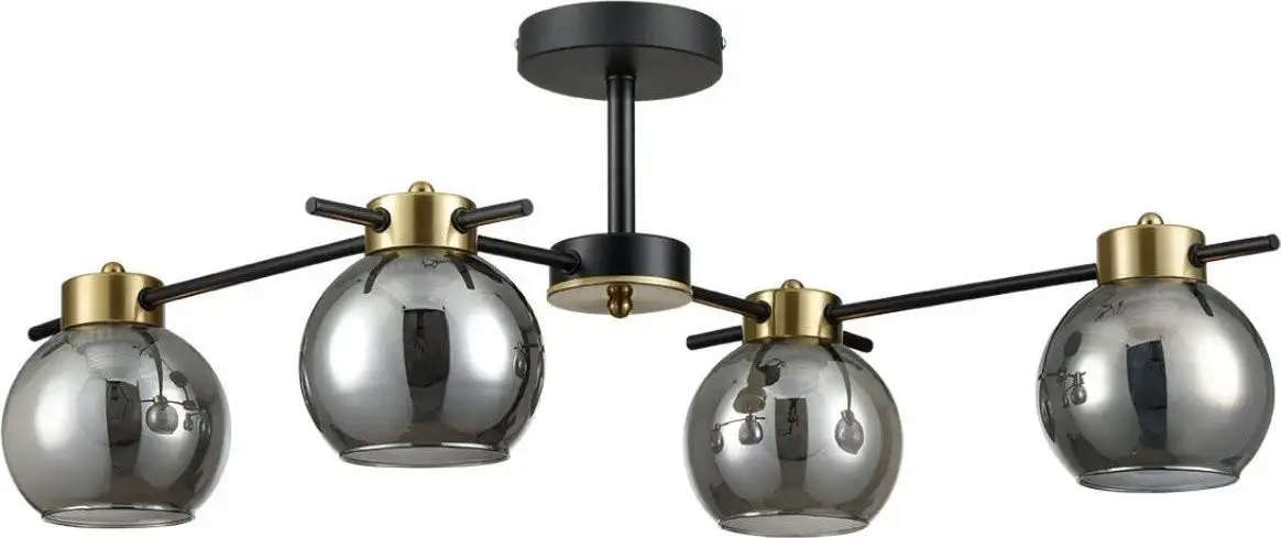 Люстра Lumion Emina 8059/4C — это современное потолочное освещение среднего размера, которое отлично подходит для гостиных и спален. Она оснащена четырьмя лампами мощностью по 60 Вт каждая с цоколем E27, что обеспечивает яркое и равномерное освещение. Каркас выполнен из прочного металла в черном и золотистом цвете, а плафоны сделаны из стекла, что придает изделию стильный внешний вид. Размеры люстры: длина и ширина по 46 см, высота 26 см, она легко устанавливается на потолок с помощью планки. В комплект лампочки не входят, поэтому вы можете выбрать подходящие лампы по вашему вкусу и потребностям. Люстра не имеет встроенного Wi-Fi или дистанционного управления, что упрощает уход за ней. Она не регулируется по яркости или цветовой температуре, но благодаря качественным материалам прослужит долго.