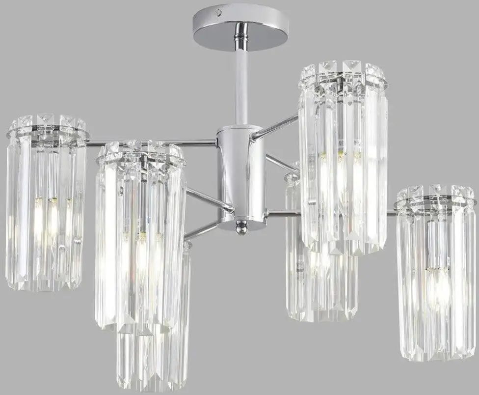 Люстра Lumion Favla 8348/6C — это классическая модель, которая отлично подойдет для потолочного освещения в доме. Она имеет шесть ламп с цоколем E14 и обеспечивает яркое освещение благодаря мощности каждой лампы в 40 Вт. Каркас выполнен из металла серебристого цвета, а плафоны сделаны из прозрачного стекла, что придает ей элегантный и современный вид. Люстра имеет размер 58 см в длину и ширину, а ее высота — 43 см, что делает ее подходящей для различных помещений. В конструкции не предусмотрено встроенное освещение или регулировка яркости и цвета, поэтому она работает на стандартных световых приборах. Простая установка по планке обеспечивает надежное крепление к потолку. Люстра не включает лампочки в комплект, их необходимо покупать отдельно. Благодаря своей конструкции и стилю, она отлично гармонирует с классическим интерьером, создавая уютную атмосферу.